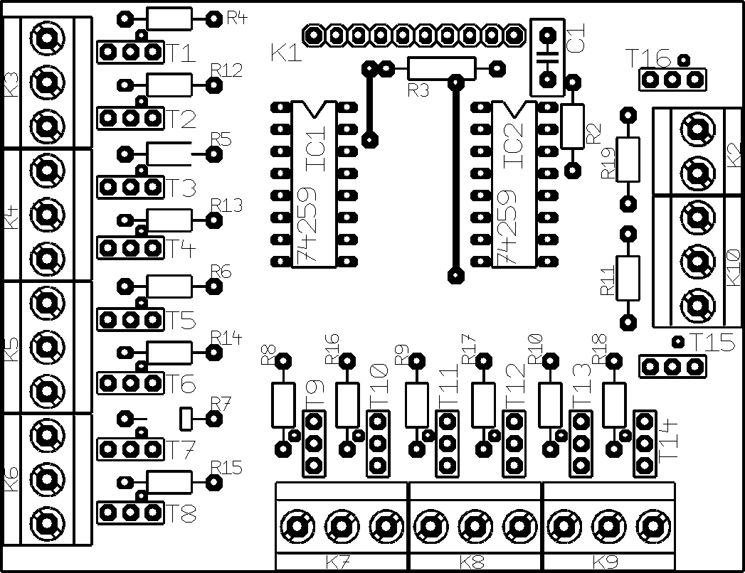 Transistoren der Gehäuseform TO92 und TO126 in der Platine vorgesehen.
